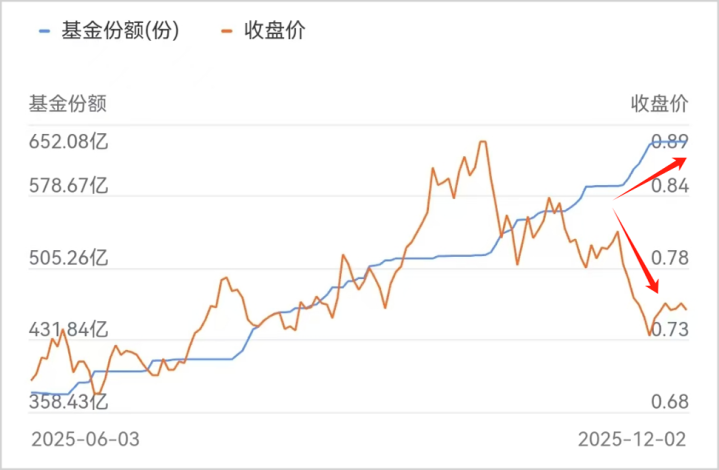 以恒生科技指数ETF(513180)为例,流通份额从年初的370亿份激增至当前的634亿份,流通规模从221亿元膨胀至478亿元。尤其在10月以来的调整中,该ETF累计净增份额达116亿份,较9月末仓位增加超过20%。