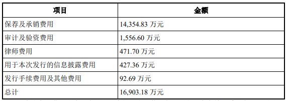 本次禾元生物公开发行新股的发行费用合计16,903.18万元(不含增值税),其中保荐及承销费用14,354.83万元。